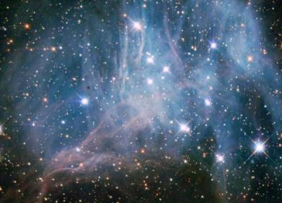 تصویر ثبت شده با تلسکوپ فضایی هابل، ستارگان جوان را در یک خوشه ستاره ای نشان می دهد.