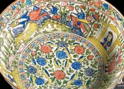 وی این قدح سفالیِ بدل چینی نقاشی های زیبایی به تصویر کشیده شده که روایتگر رسوم و فرهنگ مردم ایران در دوره قاجار، از جمله نوروز است.